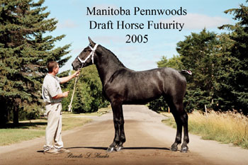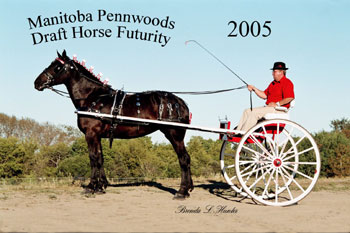 Virden, Manitoba was the place to be the weekend of August 19 & 21, 2005 when the Manitoba Pennwoods Draft Horse Futurity was held in conjunction with the Virden Indoor Rodeo and Wild West Daze. Mr. Wes Gordeyko from Ohaton, AB was the judge for the two day event, with Darryl Horn of Virden handling the duties as ringman, and Dr. Everett More also of Virden, capably providing the commentary.